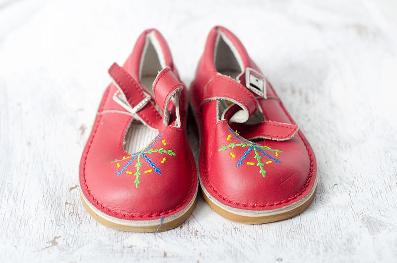 Vintage NEW kid's shoes. Red shoes. 60s fashion. Old school. Retro shoes. leather shoes. back to school